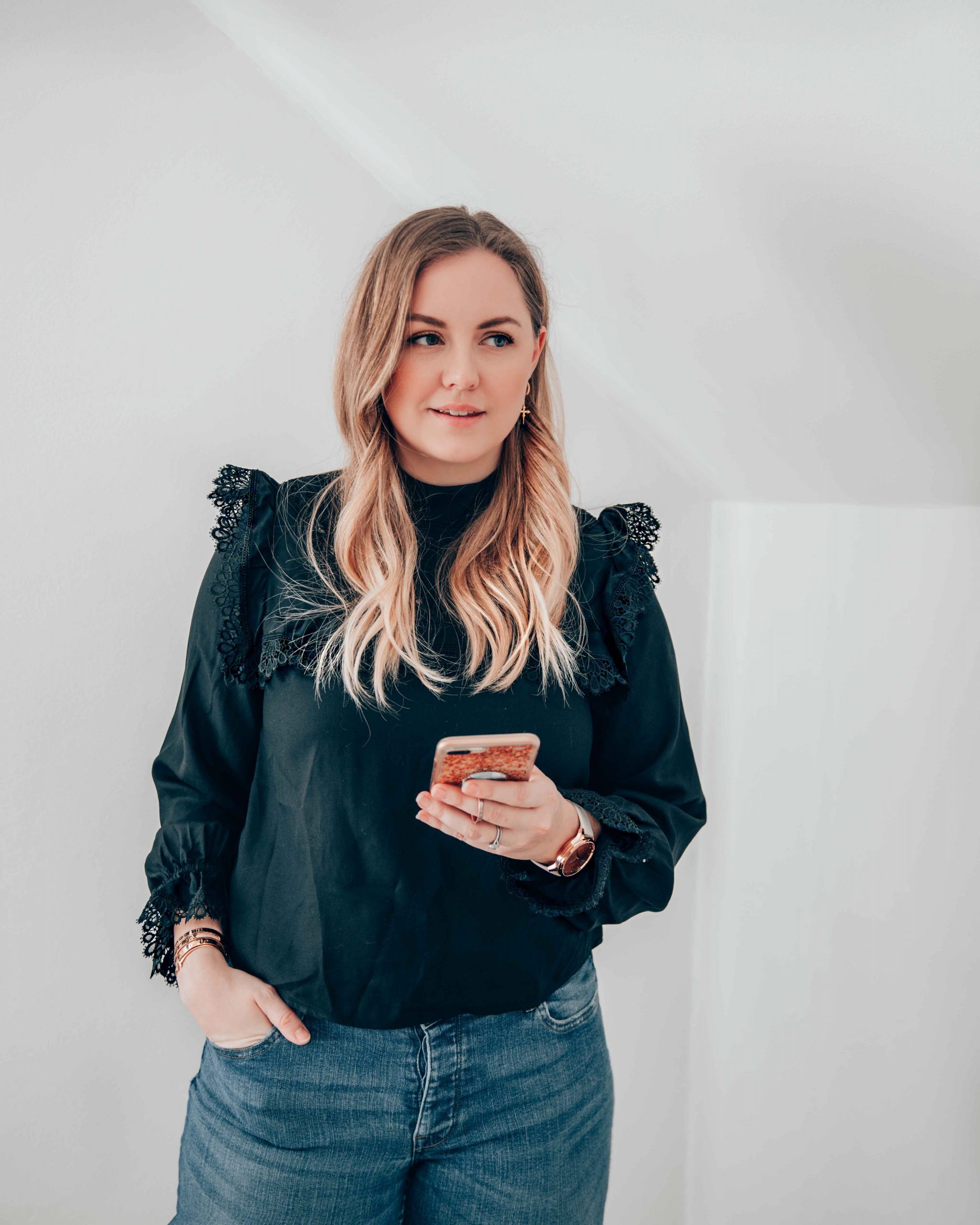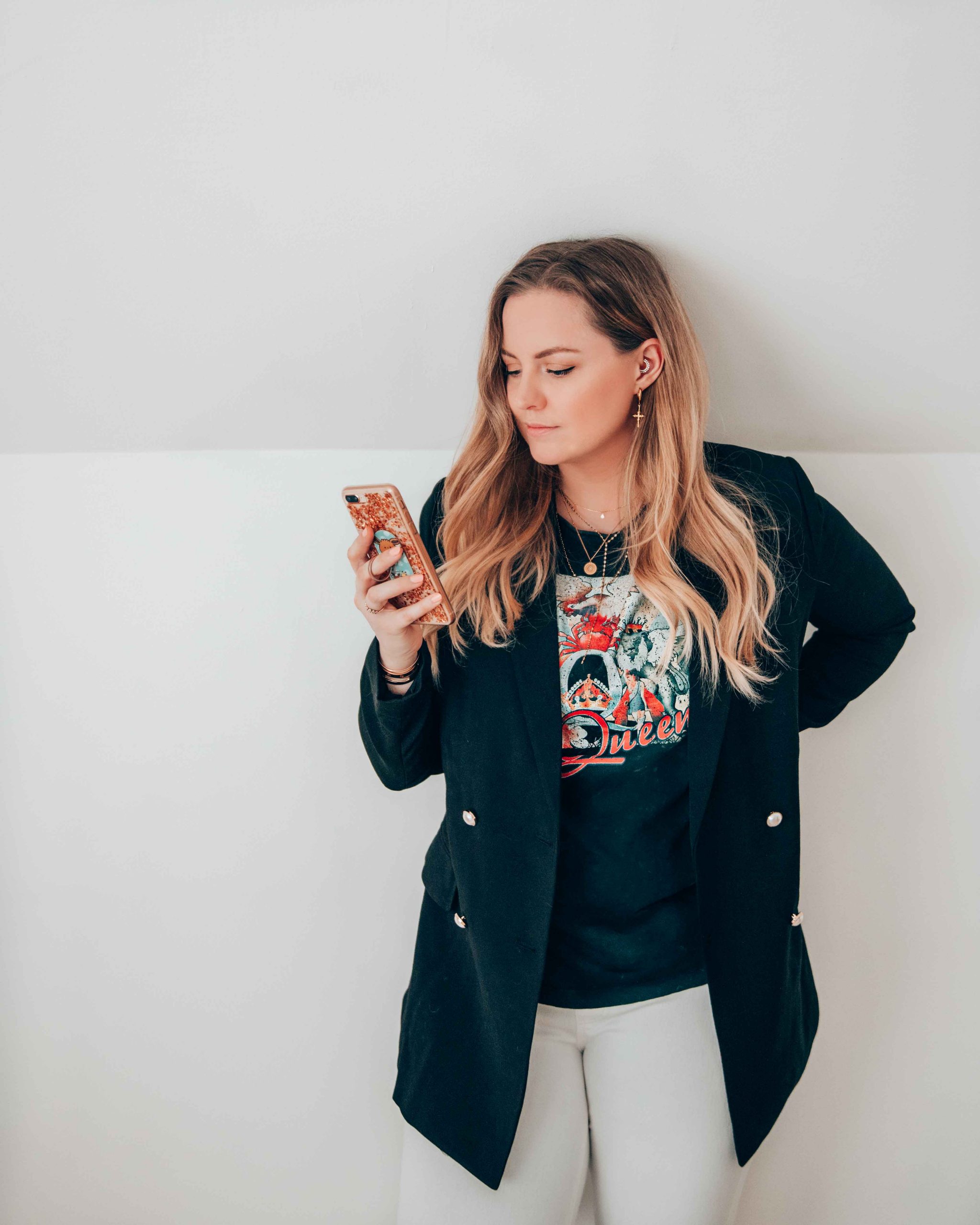 En automne et hiver, il n’est pas rare que je porte mon jeans noir plusieurs fois par semaine. J’adore le porter de façon un peu plus rock, avec un t-shirt graphique et une paire de boots, mais c’est aussi l’idéal pour un look chic avec une belle paire de mocassins. Personellement, je préfère les coupes slim, qui me permettent de rentrer le bas de mon jeans dans une paire de boots.